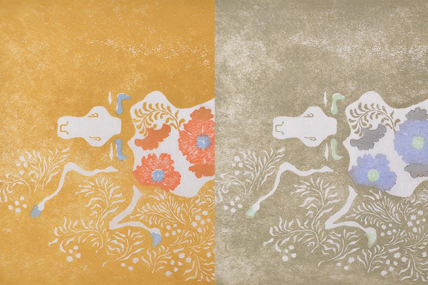 版画は複製技術ではありますが、絵の具の調合や紙の湿り気・バレンに入れる力加減などで、多様な刷り方ができます。今回展示する作品たちも、同じ版でも色の組み合わせや刷り味によって、1枚ずつ違う出来栄えになりました。