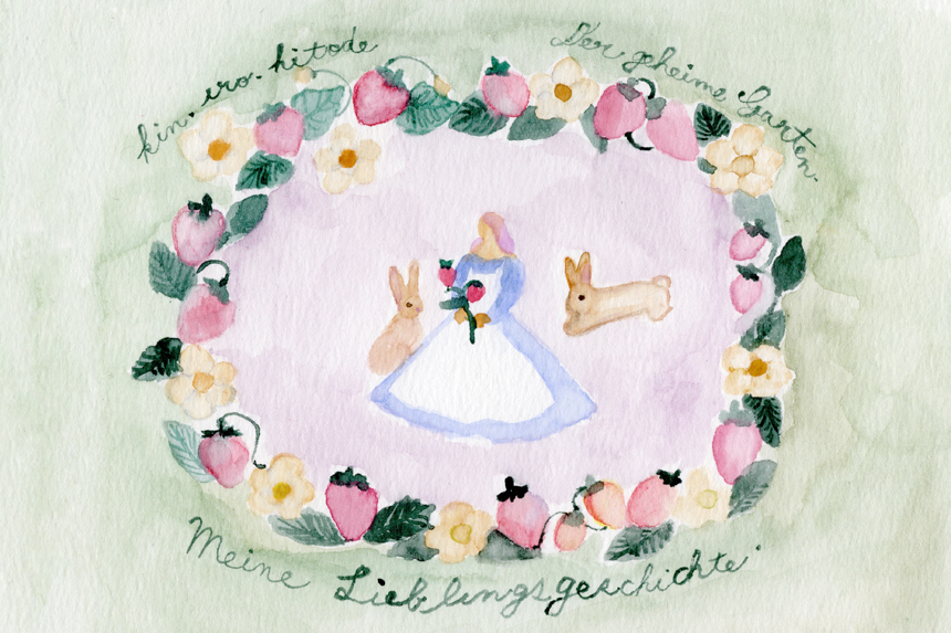 淡いペールトーンがアイコニックなkin.iro.hitodeさんの作品の中には、だれもが胸ときめくような、おとぎ話の世界がひろがっています。作品を観る側の私たちは、自然とロマンティックな気分になり、さらにはどこからかやさしく甘い香りが漂ってきそうで、絵に込められた物語の”余韻”をいつのまにか五感で受け止めていることに気づかされます。