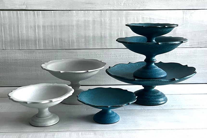 洋の印象が強いコンポート皿ですが、「Pottery studio Boo」の作品は華美になりすぎない絶妙な塩梅のデザインで、和の食卓にも似合う万能選手。アクセサリートレーなど、食器以外の用途としても活躍します。
