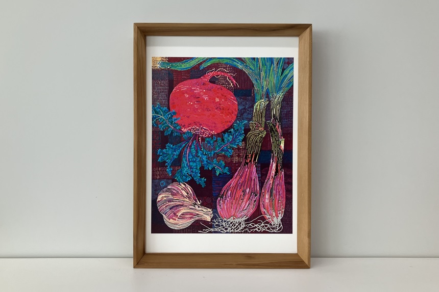 さらに、栗原氏が愛する果物や生物の溢れる瑞々しさを、箔や透明樹脂による盛り上げ加飾で表現し、原画とは異なる新たな魅力を創造しています。この一連の製法を、わたしたちは「Creative Works Print(クリエイティブワークスプリント)」と名付けました。