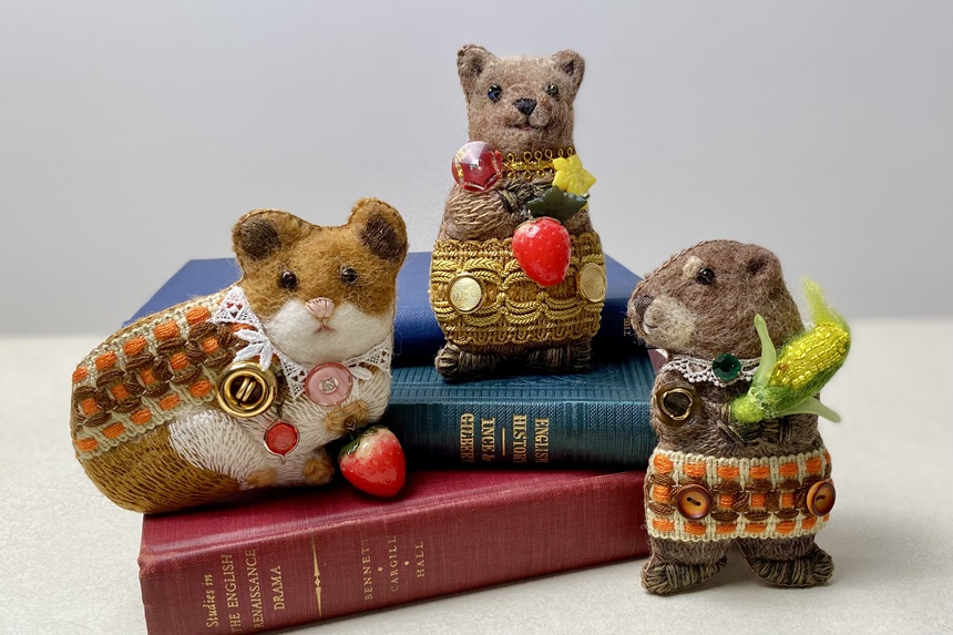 そんなAZさんの作品の中でも、「知る人ぞ知る、ニッチでかわいい動物」たちだけをリクエストして集めている本特集は、今年で4年目となりました。今夏の特集では、海の哺乳類、「海獣」たちが初登場します。ニードルフェルティングのふわもこアニマルとは一味違う、スエード素材の上品な質感にも注目です。
