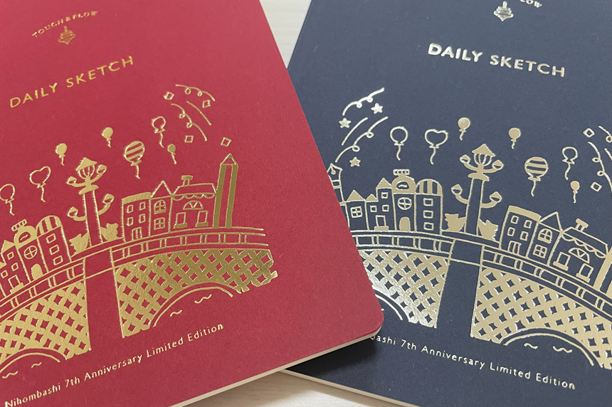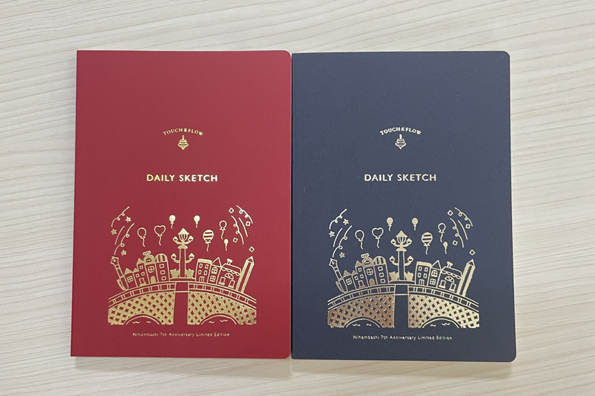 7周年を記念して、毎年ご好評いただいている「DAILY SKETCH 落書きバージョン 風船と日本橋」を、2025年9月13日(土)より日本橋店にて限定販売いたします。今年も、店舗スタッフがデザインした日本橋のモチーフをあしらった、赤と紺の2種類をご用意しました。各色100冊の数量限定ですので、お早めにお求めください。