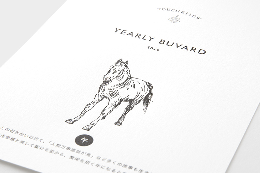 来年の干支である午(うま)をモチーフにしたイラストをのせて活版印刷で仕上げました。インクの吸い取り紙、栞としてご活用ください。