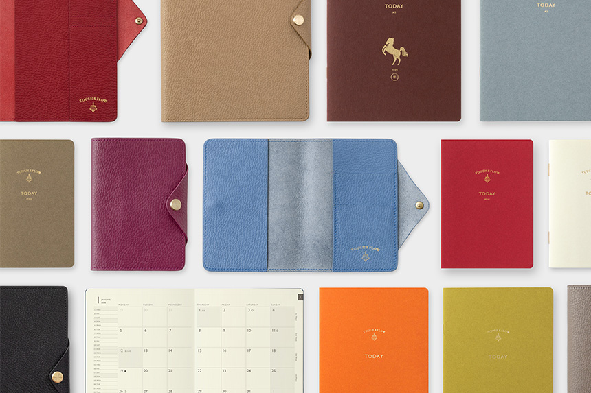 タッチアンドフローのオリジナルダイアリー〔トゥデイ〕の2026年版を、2025年9月8日(木)から販売します。昨年に続きマンスリータイプの干支柄、さらにB7サイズの革カバー〔ミニスケッチ ジッパー〕が新発売になります。また、毎年ご好評いただいている限定色のレザーカバーも同時に発売開始です。